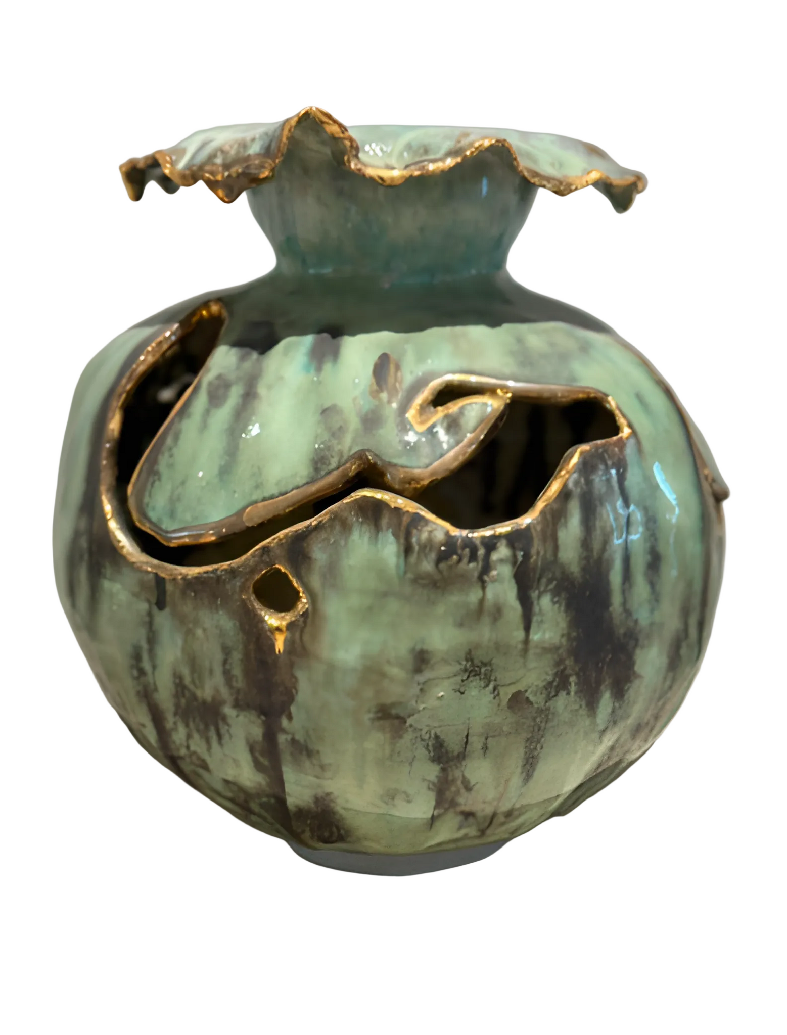 Medium/Materials: Hand-built from white stoneware and dressed in luminous layers of glaze, each surface reveals shifting tones, rich textures, and unexpected harmonies born from the fire.