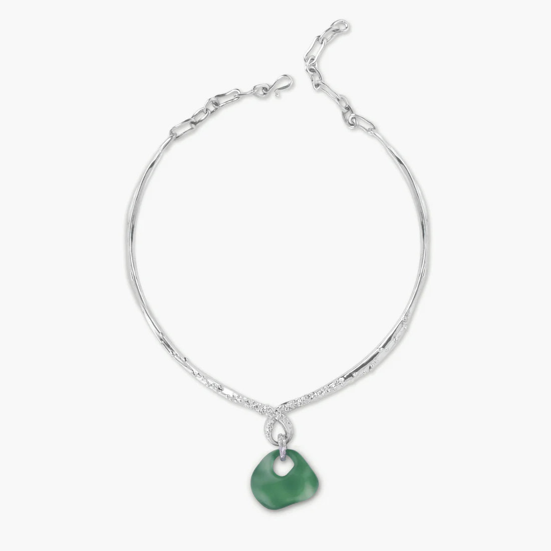 The Ember Necklace features a smooth, sculpted metal band, subtly textured with a granulated finish, that gracefully encircles the neck. At its heart, a luminous resin pendant, hand-polished to glow softly from within like a steadfast ember, is cradled by the metal's embrace. This design radiates an inner spark, reflecting the wearer's undimmed aura and symbolizing how one's deepest passions are carried and uplifted.