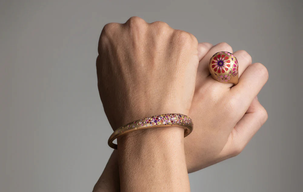 Handcrafted with precision in Nada’s atelier, each stone is carefully selected and meticulously set by her master artisans. This symbiotic relationship between designer and craftspeople ensures that every creation is not just jewelry but a timeless work of art.
