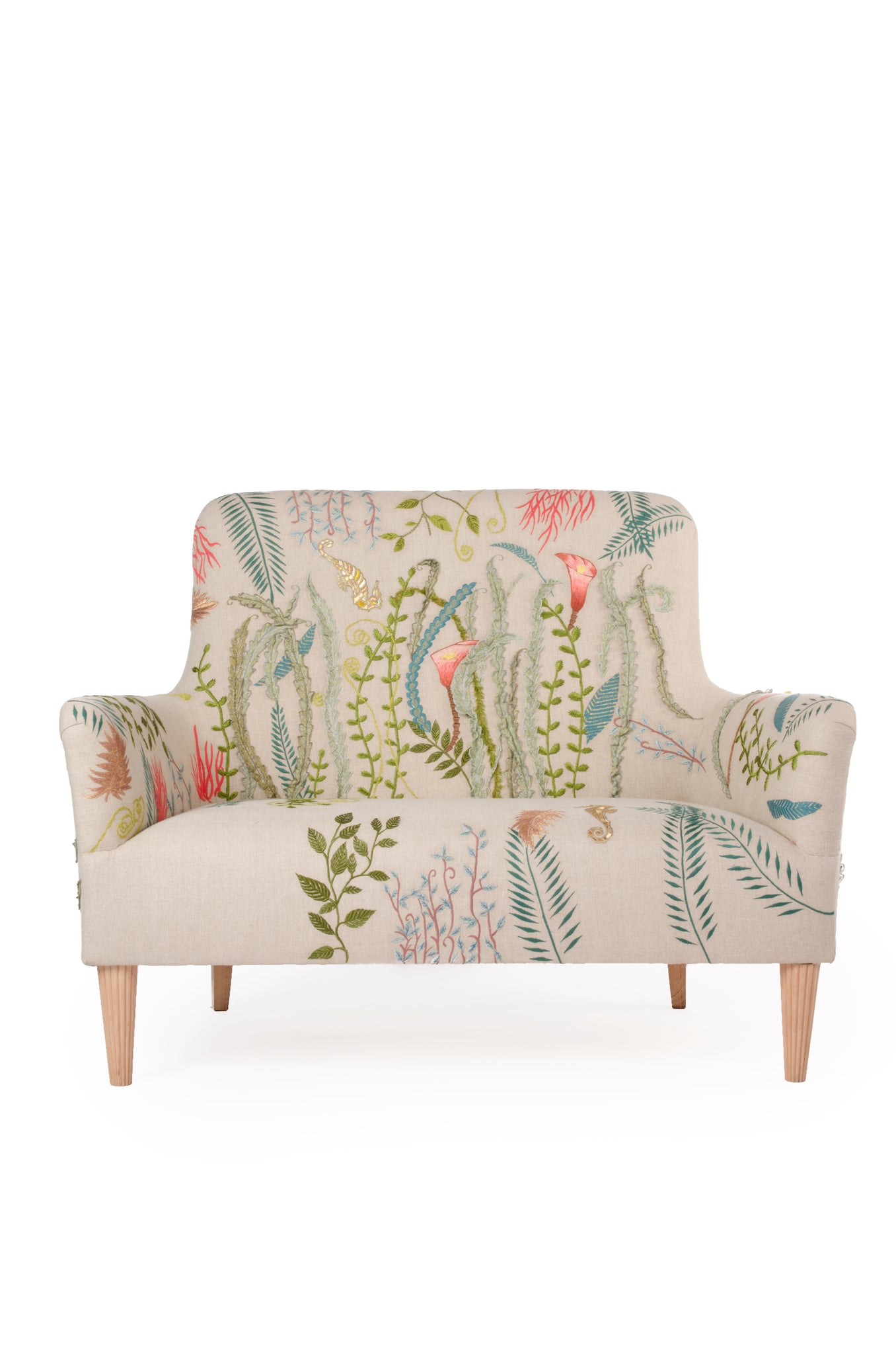 Bringing together the realms of the aquatic and the terrestrial into a single scene, we capture the interplay of ferns and lilies as seahorses interact with them in a peculiar mating dance. If we linger long enough, we’ll observe how the roles of gender are bent in this scene, as the male seahorses are the ones who end up pregnant. This love seat is the appropriate conversation starter for an intimate tête-à-tête while surrounded by floral gestures of divergent landscapes.