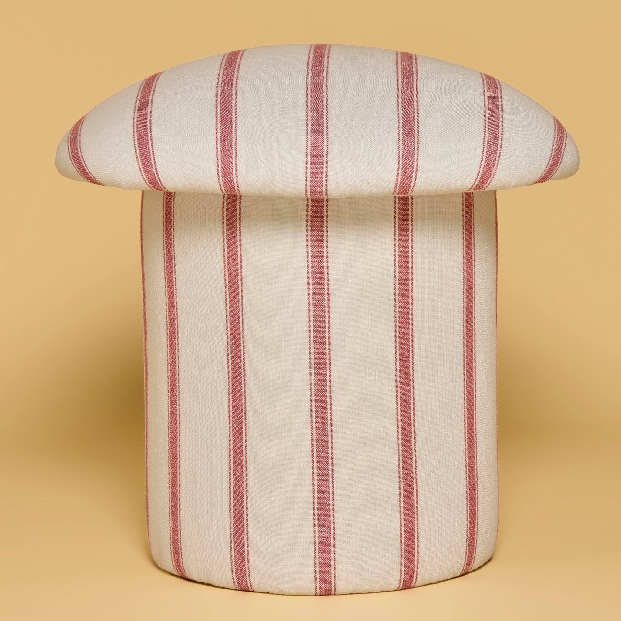Mushroom stool featuring an ancient weaving technique in earthy tones.