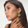 Brass plated in 21k Gold with a matte finish, custom-made Resin stones & crystals. Our signature hand-sculpted resin captures a luminous, translucent effect. While strong and durable for daily wear, it should be treated with care as it can break if dropped or subjected to impact.