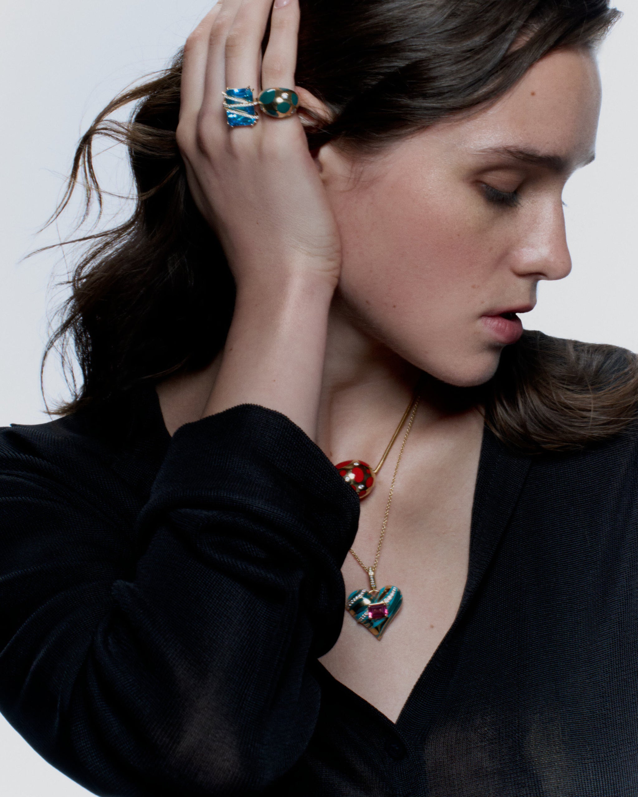 For Carineh, the untamed beauty of the natural world and bold femininity are inseparable. Her lifelong love for animal prints found its ultimate expression in jewelry, appearing throughout the collections alongside designs that share the same visual language, meant to be worn together and layered perfectly.