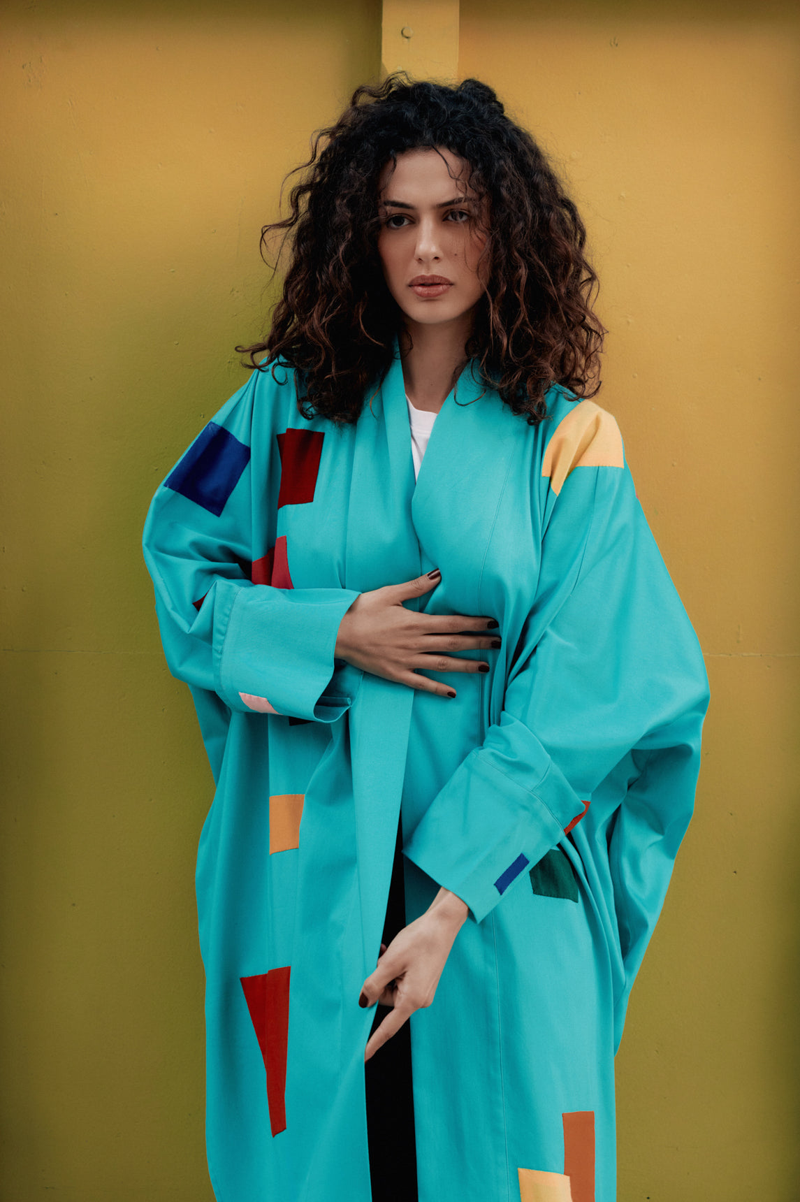 The FAI kimono is adorned with hand-appliqué. This kimono features a relaxed silhouette and side pockets. Perfect to elevate any look.