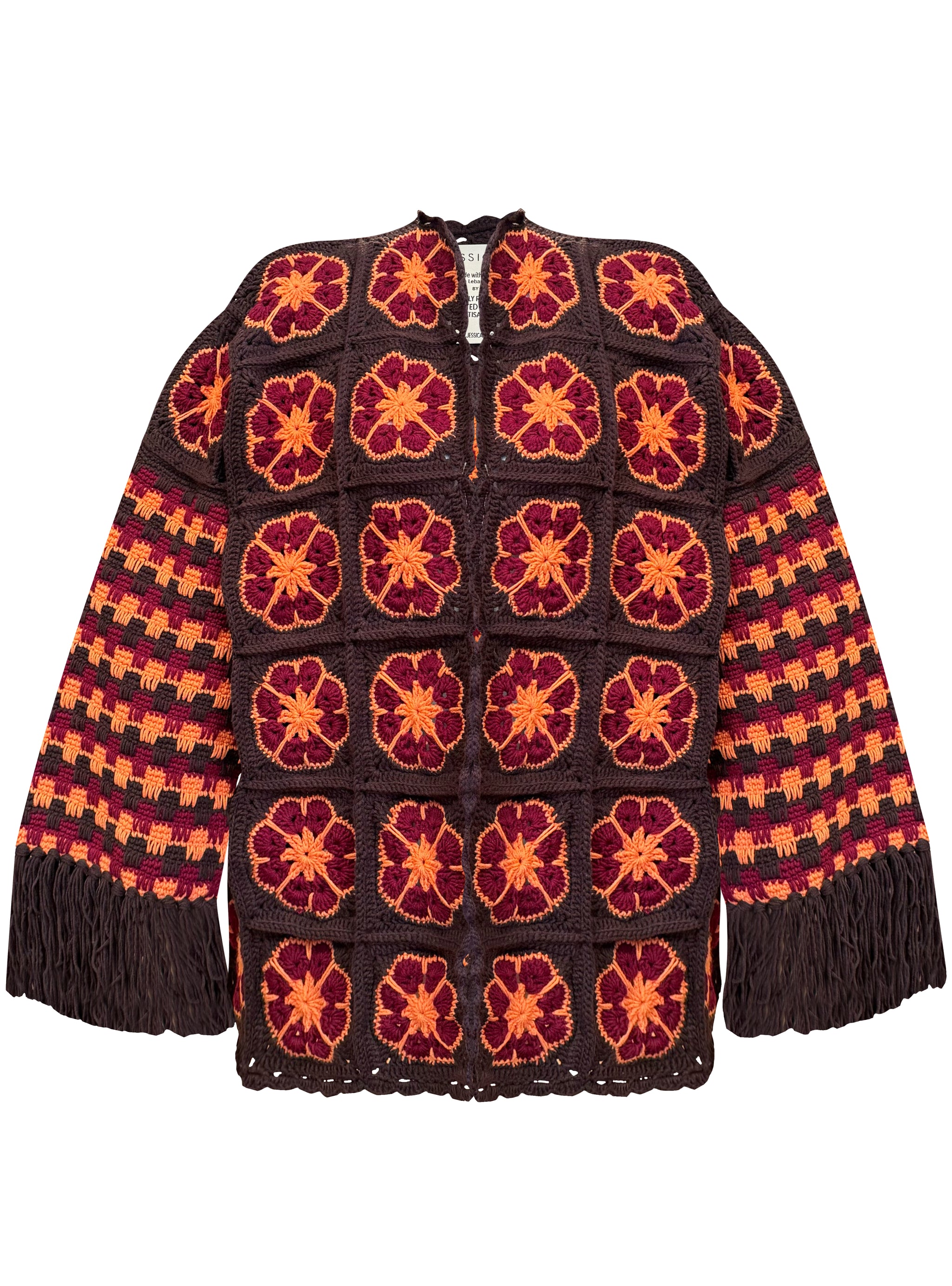 Handcrafted Lotus Flowers jacket with tassels. Designed in Beirut and hand-knitted by local artisans.