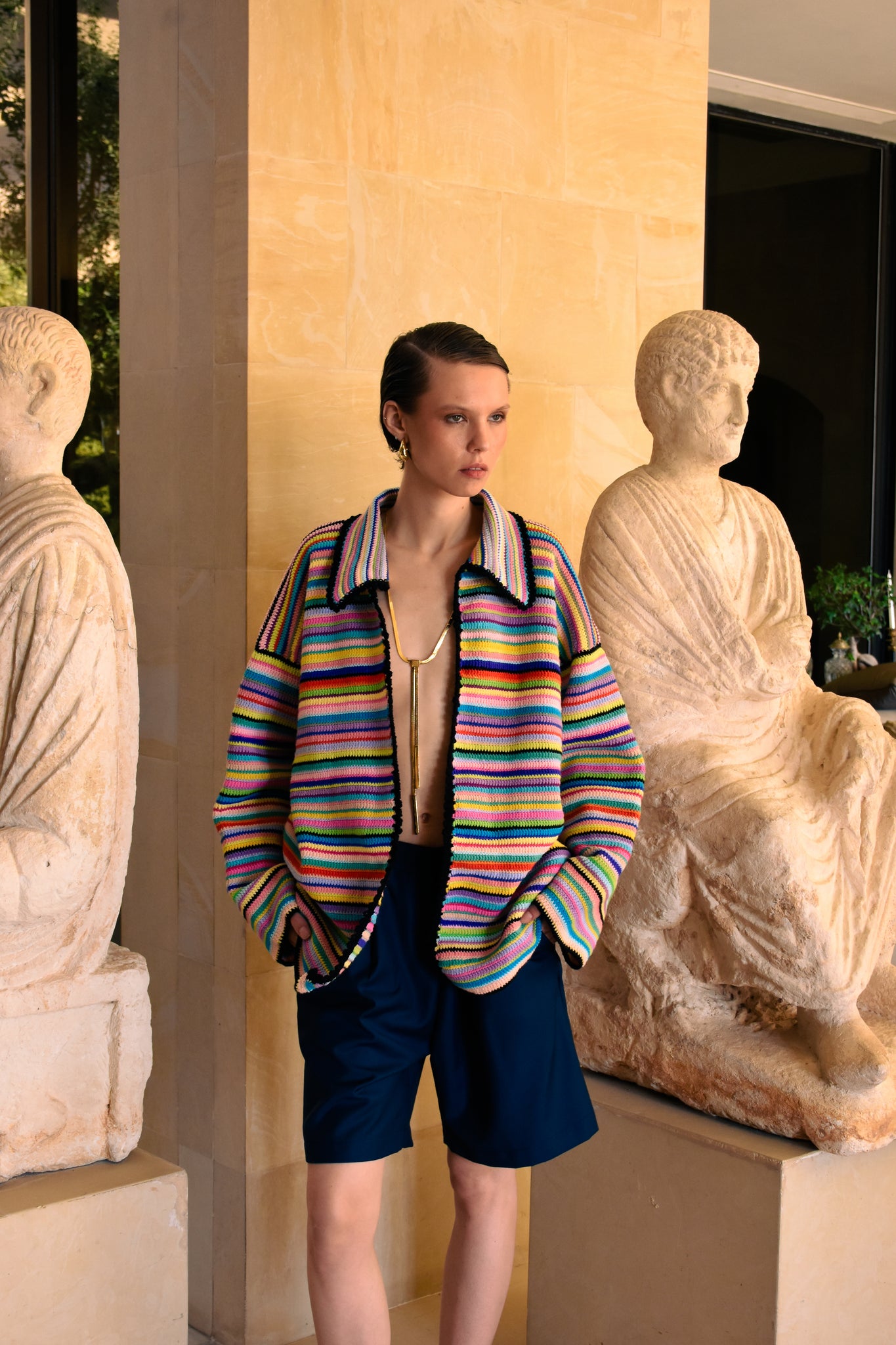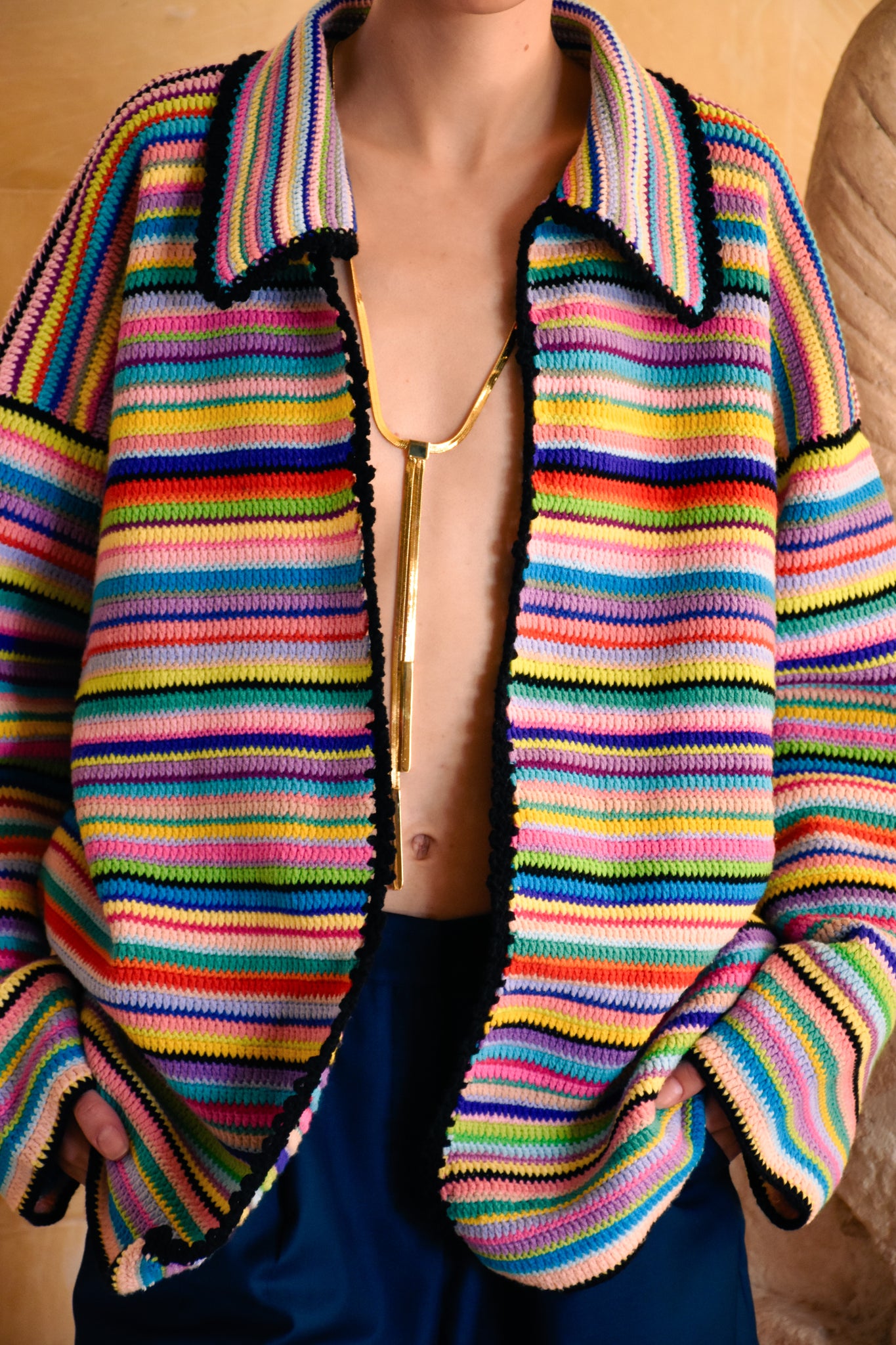 Handcrafted oversized striped jacket. Designed in Beirut and Hand-knitted by Local Artisans.