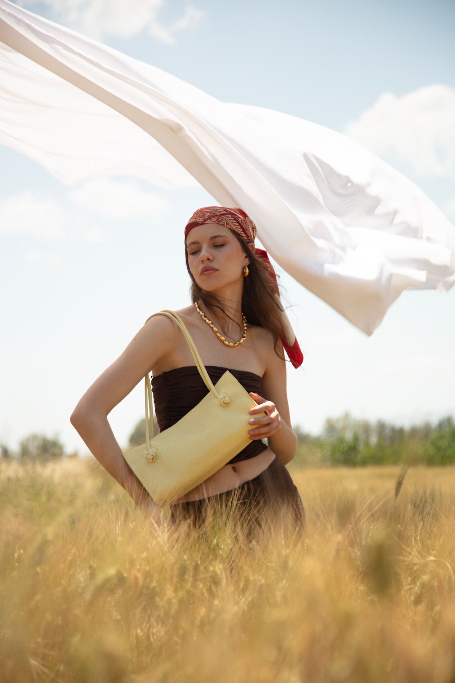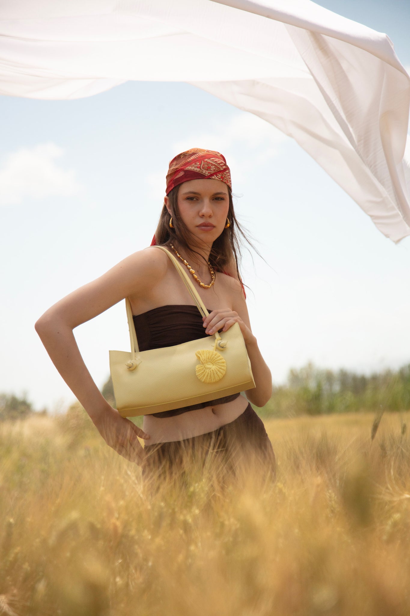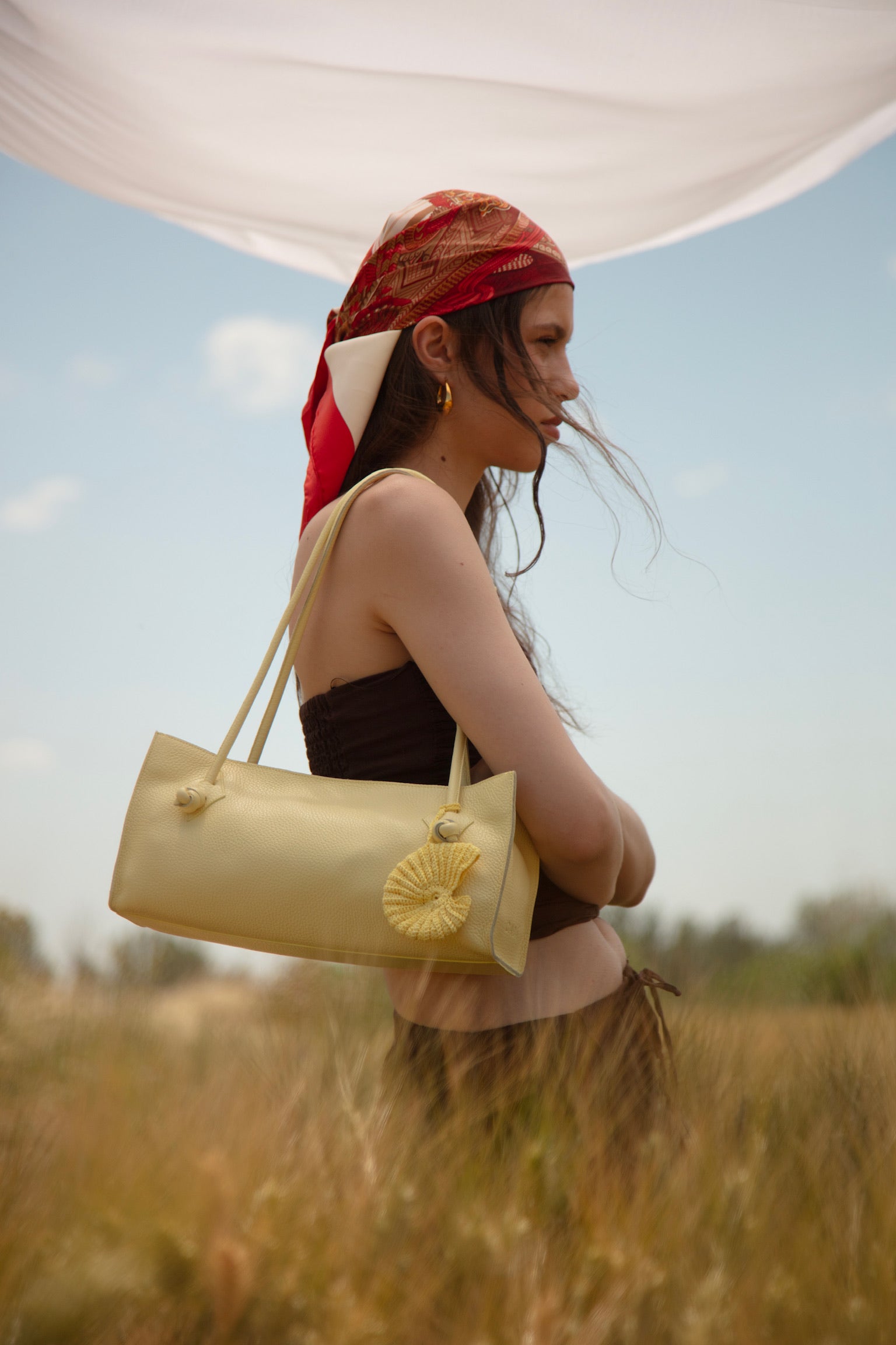 compact body that feels both modern and ladylike. Crafted from Italian grained calfskin leather, it’s designed to be effortlessly slung over the shoulder, offering a sculptural yet