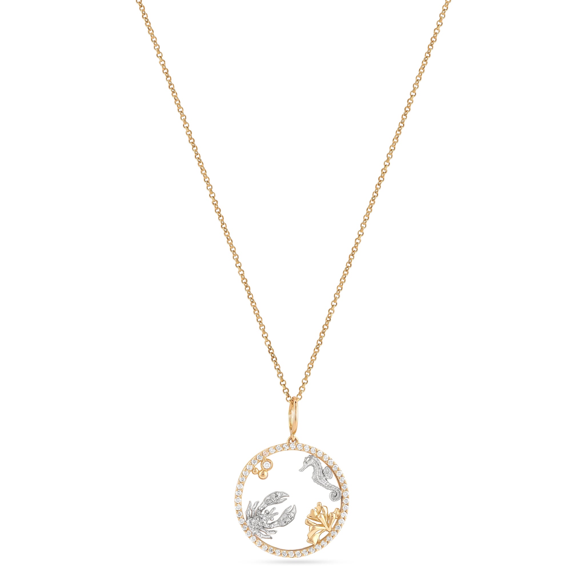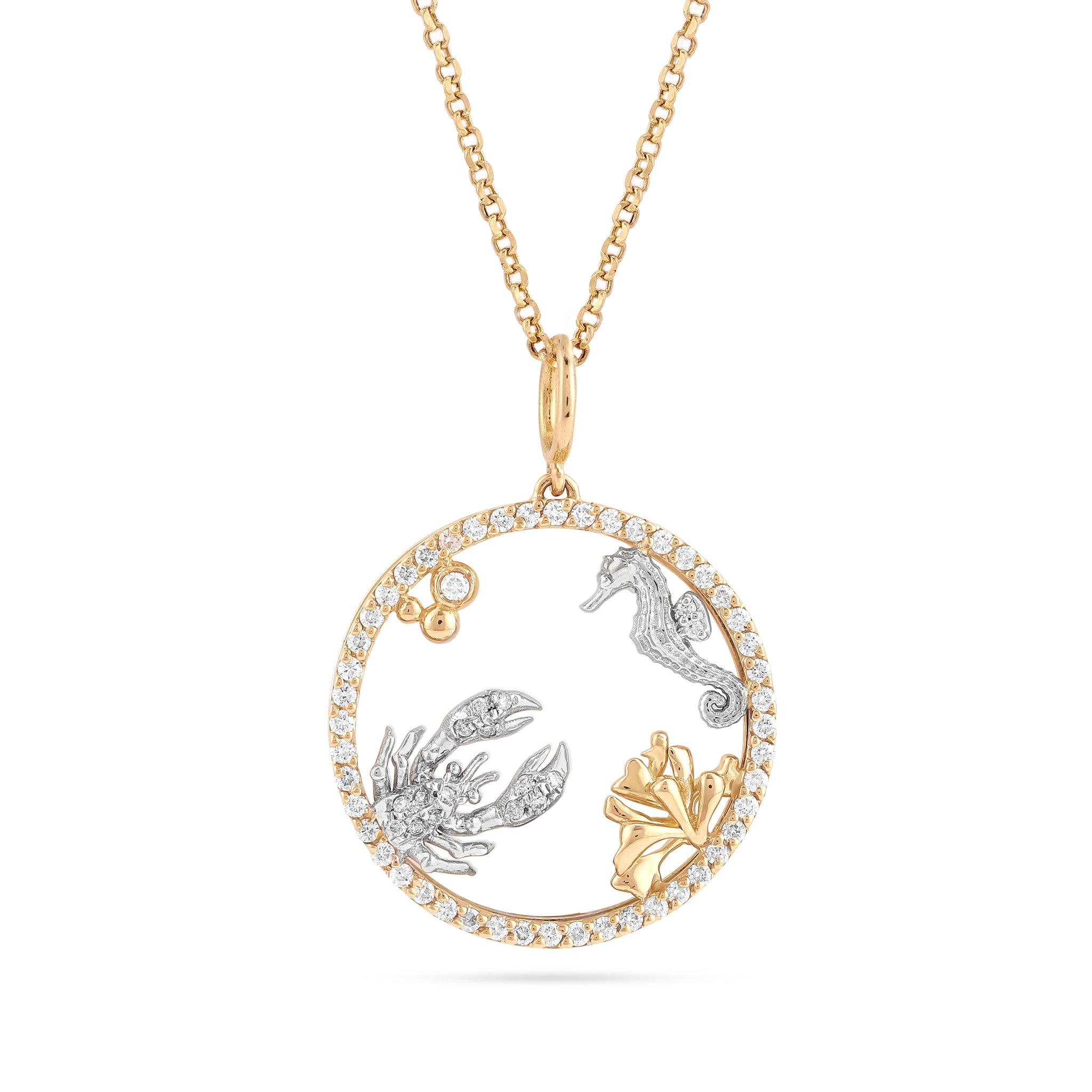 Pendant in 18k gold, available in two combinations white and yellow gold or white and rose gold.